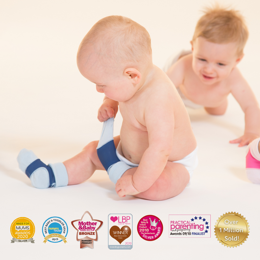 Crawling socks with anti slip silicon grips to protect little knees!